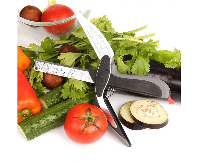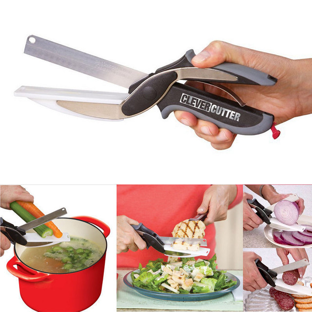 Кухонний ніж Clever Cutter являє собою гострий ніж із неіржавкої сталі та обробну дошку. Clever Cutter більше схожий на пару ножиць, з гострим ножем на одній стороні та "роздільну дошку" на іншій стороні. Він насправді добрий для різання м'яса, фруктів і овочів. Крім того, він також знижує ризик порізів на кухні.